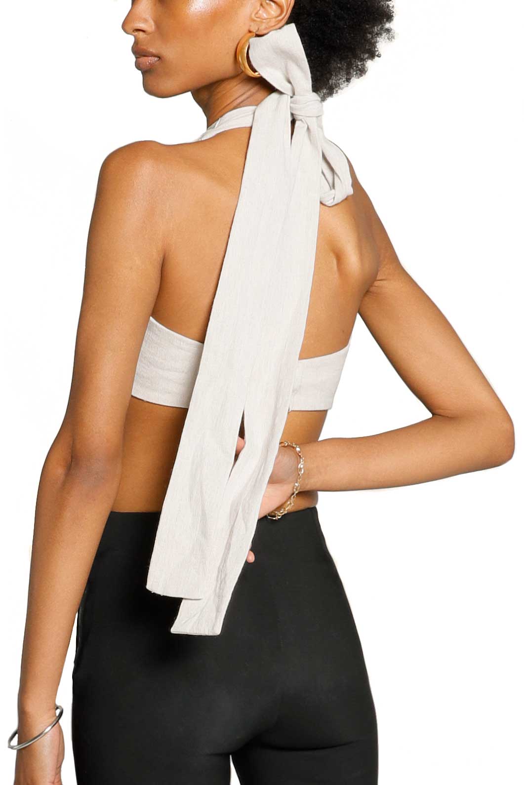 Hera is a ruched halter neck with an extravagantly long tie and an underwired crop. The fabric is thickly ruched throughout the front panel, for a delicately textured effect. Wear underneath a boxy blazer to emphasise the truly unique shape, or pair with baggy blue jeans, Levi 501’s are our favourites.