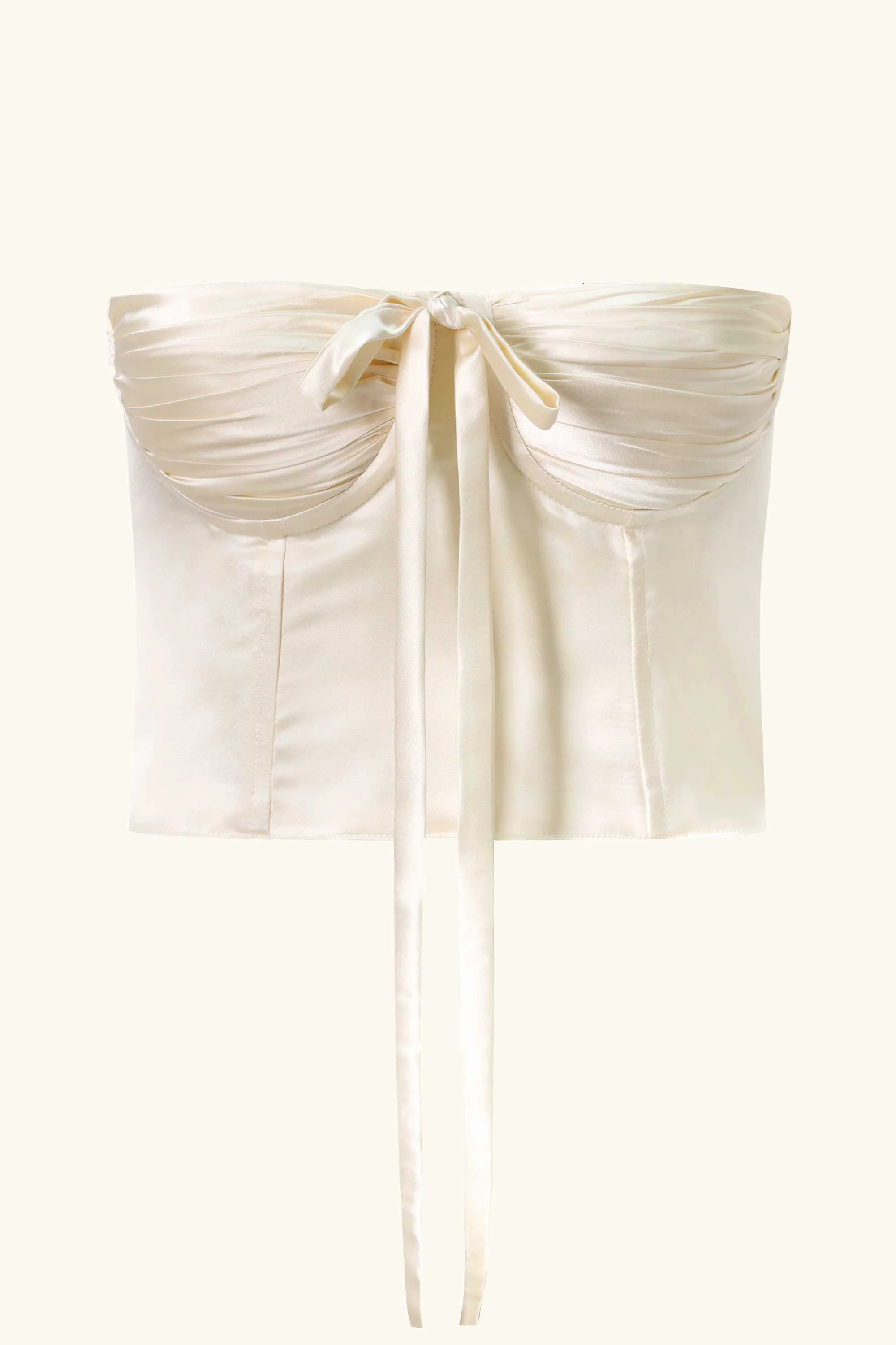 A hand tacked ruched bustier with a halter neck and corsetry-inspired back. Paired with our staple Dawn Mini Skirt, a mid-waisted a-line silk skirt with a slightly dipped waist and hemline for a flattering fit.